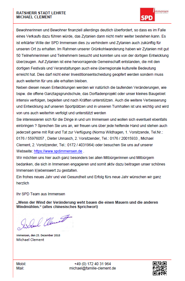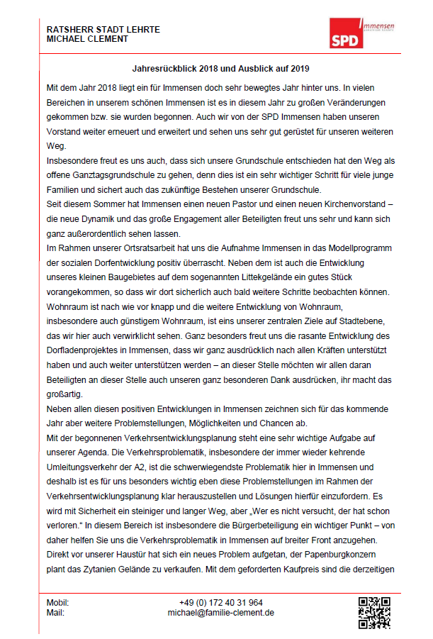 07.06.2019 - Gemeinsame Erklärung des Ortsrates Immensen